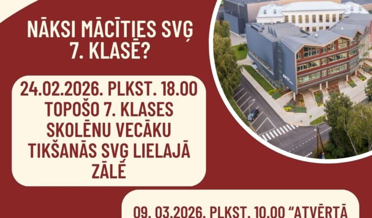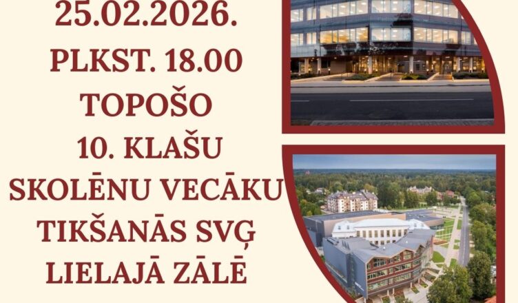 Šī gada 25. februārī plkst. 18.00 SVĢ lielajā zālē uz tikšanos aicinām topošo 10. klašu skolēnu VECĀKUS.