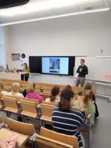Lekcijā 12.A un 12.D klases uzzināja par iespējām studēt šajās augstskolās, divu gadu pieredzi, studentu dzīvi, kā arī iegūt vērtīgus padomus , stājoties augstskolās.