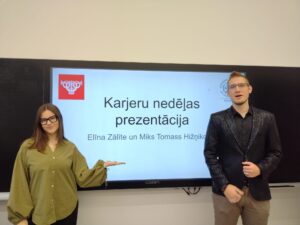 Karjeras nedēļas ietvaros 10.oktobrī ar savu pieredzi pie mums dalījās mūsu skolas absolventi Elīna Zālīte (Rīgas Juridiskā augstskola (Riga Graduate School of Law) un Miks Tomass Hižņikovs (Rīgas Ekonomikas augstskola (Stockholm School of Economics).