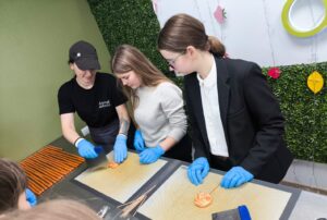 Saldākā ekskursijas daļa bija karameļu darbnīcā. Pašiem tika dota iespēja radīt dabīgus saldumus ar aprikožu garšu.Mājupceļā pusaudži aplūkoja pirmo jauniešu radīto murāli jeb sienas gleznojumu, kas tapis uz aptuveni 21 metra garas betona sienas. Sienas gleznojums atspoguļo jauniešu sapņu pasauli – tēlus, simbolus un vēstījumus par draudzību, radošumu un vienotību.