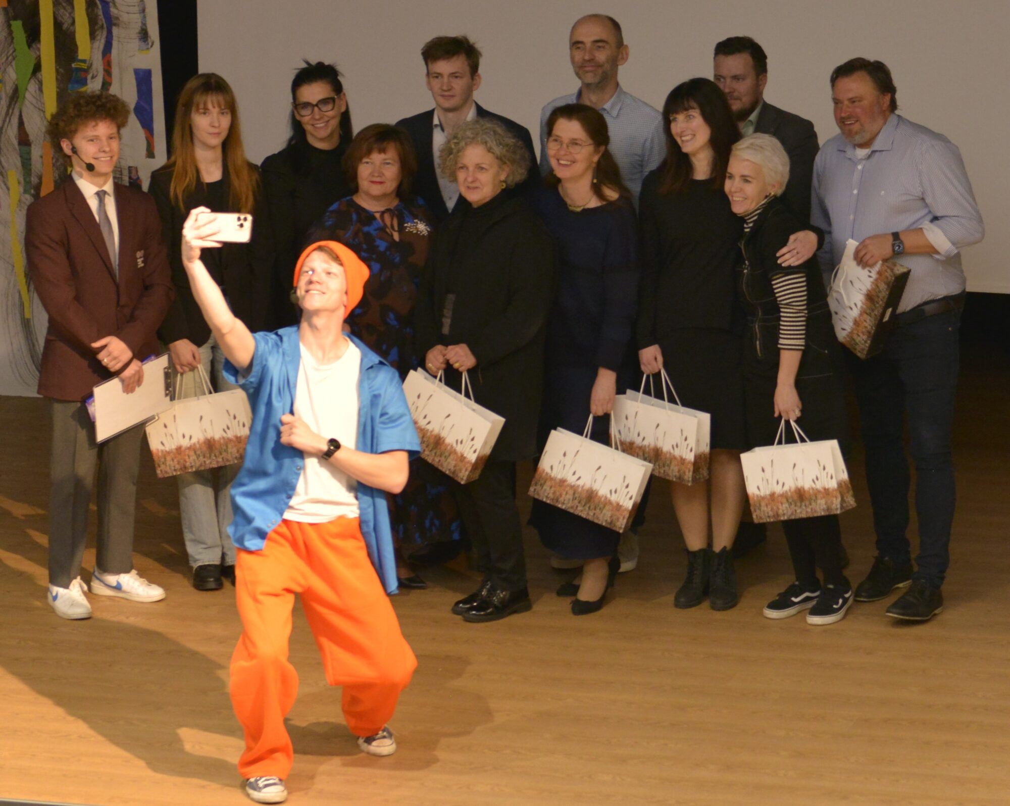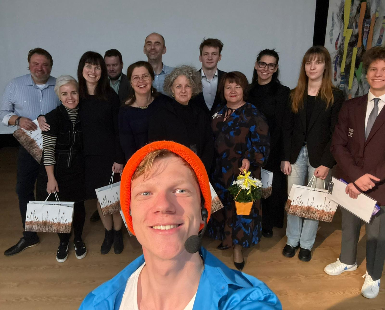 konferences vadītājiem Markam Ludvigam Putniņam un Artūram Riekstiņam (12. b klases