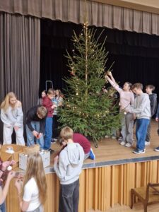 Ziemassvētku eglītes rotāšana ir ģimenisku sajūtu pilna. Arī klase lēnām top par skolas ģimeni. Šogad lielo svētku eglīti skolēniem dāvināja 7.b klases skolnieka Jāņa Grīnberga ģimene, tāpēc egles ietērpšana svētku rotā tika uzticēta 7.b klasei un audzinātājai Svetlanai Blokinai.Sirdspaldies Jāņa ģimenei par šī gada svētku eglīšu dāvinājumu!