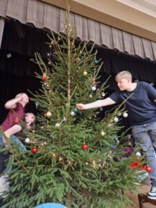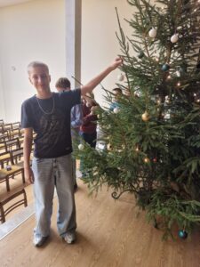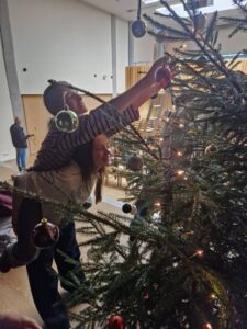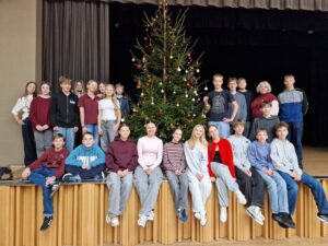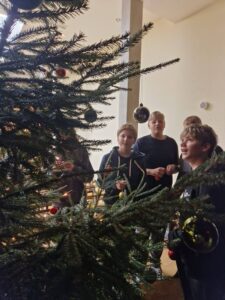 Ziemassvētku eglītes rotāšana ir ģimenisku sajūtu pilna. Arī klase lēnām top par skolas ģimeni. Šogad lielo svētku eglīti skolēniem dāvināja 7.b klases skolnieka Jāņa Grīnberga ģimene, tāpēc egles ietērpšana svētku rotā tika uzticēta 7.b klasei un audzinātājai Svetlanai Blokinai.Sirdspaldies Jāņa ģimenei par šī gada svētku eglīšu dāvinājumu!