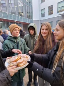 Lai iejustos tā laika atmosfērā, skolēni bija sagatavojuši tēju un sviestmaizes, kā arī vēl kādu brīdi pakavējās pie ugunskura, kur arī audzinātāji dalījās savās atmiņās