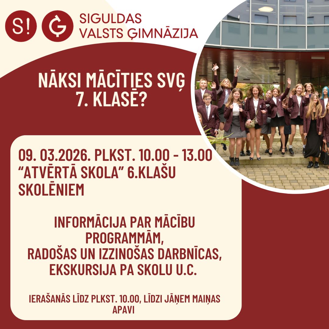 Atvērto durvju diena topošajiem 7klasniekiem 9.03.2026.