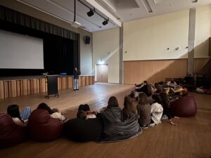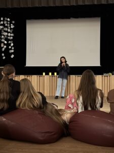 mājīgu atmosfēru. Vakaru papildināja pārsteigums – slepenais viesis – jaunā dzejniece Miera Kūpa, kura visus apbūra ar meditatīvu dzejas priekšnesumu, radot mierpilnu un iedvesmojošu noskaņu, radot īpašu nakts atmosfēru skolā.