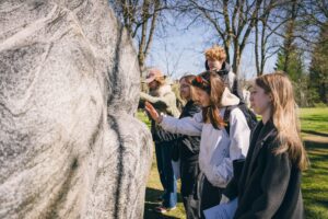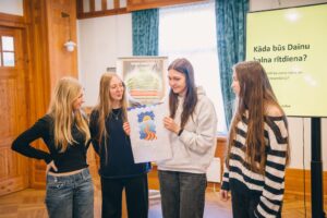 tautas dziesmu saistību ar Induļa Rankas skulptūrām. Pēc tam skolēni diskutēja par pilsoniskās līdzdalības formām Latvijas neatkarības atjaunošanā un piedāvāja radošus priekšlikumus, kā iedzīvināt Dainu kalna potenciālu mūsdienu kultūrvidē.