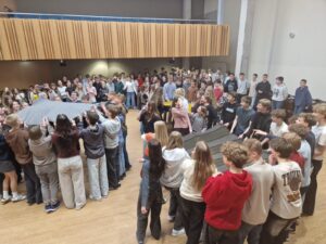 SVĢ skolēni Zaļajā ceturtdienā piedzīvoja patiesi krāšņu un prieka pilnu Lielās dienas svētku noskaņu. Folkloras kopas “Putni” vadībā skolēni ne tikai izdancināja saulīti, bet arī iesaistījās dažādās latviskās tradīcijās – dzina cūciņas, knaulējās ar olām 🥚, modināja lāci no ziemas miega un ar aizrautību iemēģināja pūst Lieldienu gaviles koka taurēs.