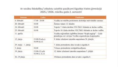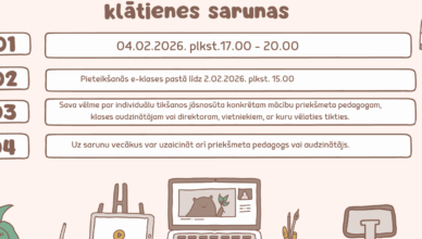 Vecāki, Jūs savu vēlmi par individuālu tikšanos nosūtiet konkrētam mācību priekšmeta pedagogam, klases audzinātājam vai direktoram, vietniekiem, ar kuru vēlaties tikties, e-klases pastā līdz 2.02.2026.Lasīt vairāk →